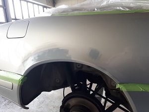 Die beschädigte Karosserie musste zuerst sorgfältig instandgesetzt werden, bevor die Lackierung durchgeführt werden konnte.